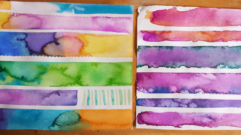 Someone recently gave us a giant pad of drawing paper, so we used that and cut each sheet into two 9×12″ pieces. It was sturdy enough to stand up to the watercolor.